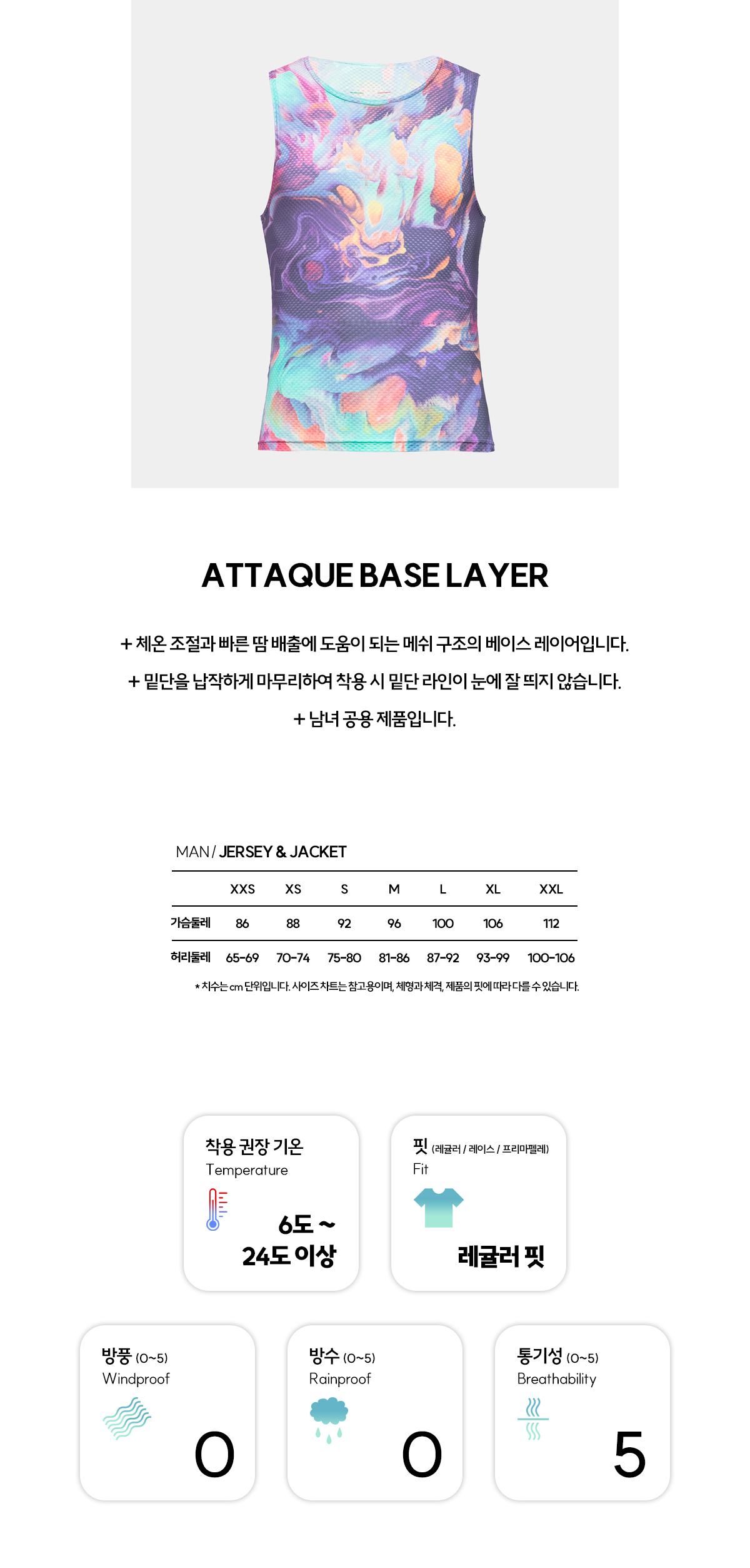 빠른 땀 흡수와 열 배출에 도움을 주는 민소매 베이스 레이어입니다.